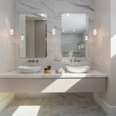 Custom Built-Ins Throughout: Architectural storage solutions in every room, including glass-fronted wardrobes with LED lighting.